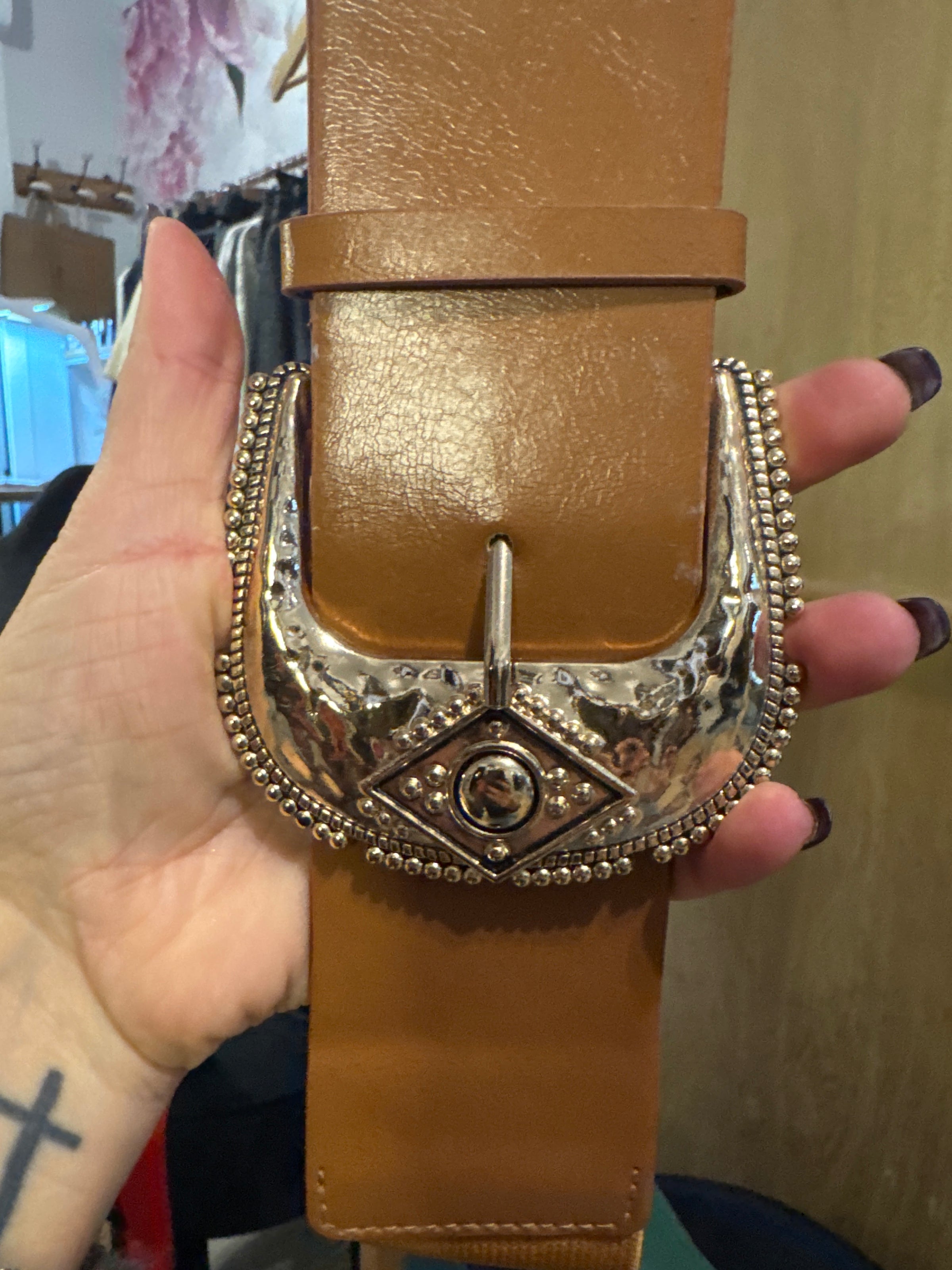 Ceinture boucle en métal, doré, taille élastique 78cm style western