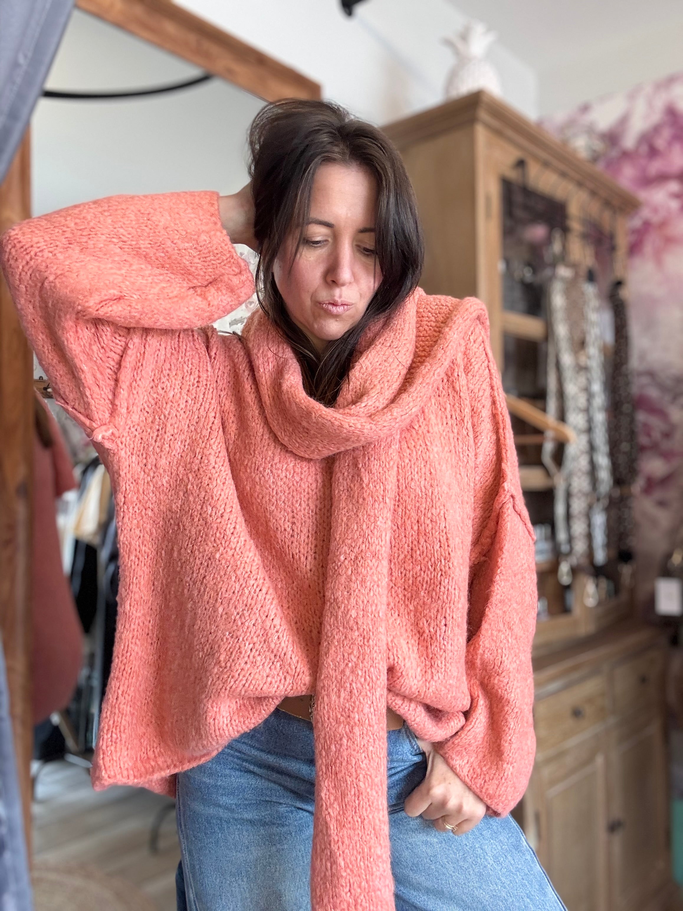 Duo pull et écharpe saumon MILLO
