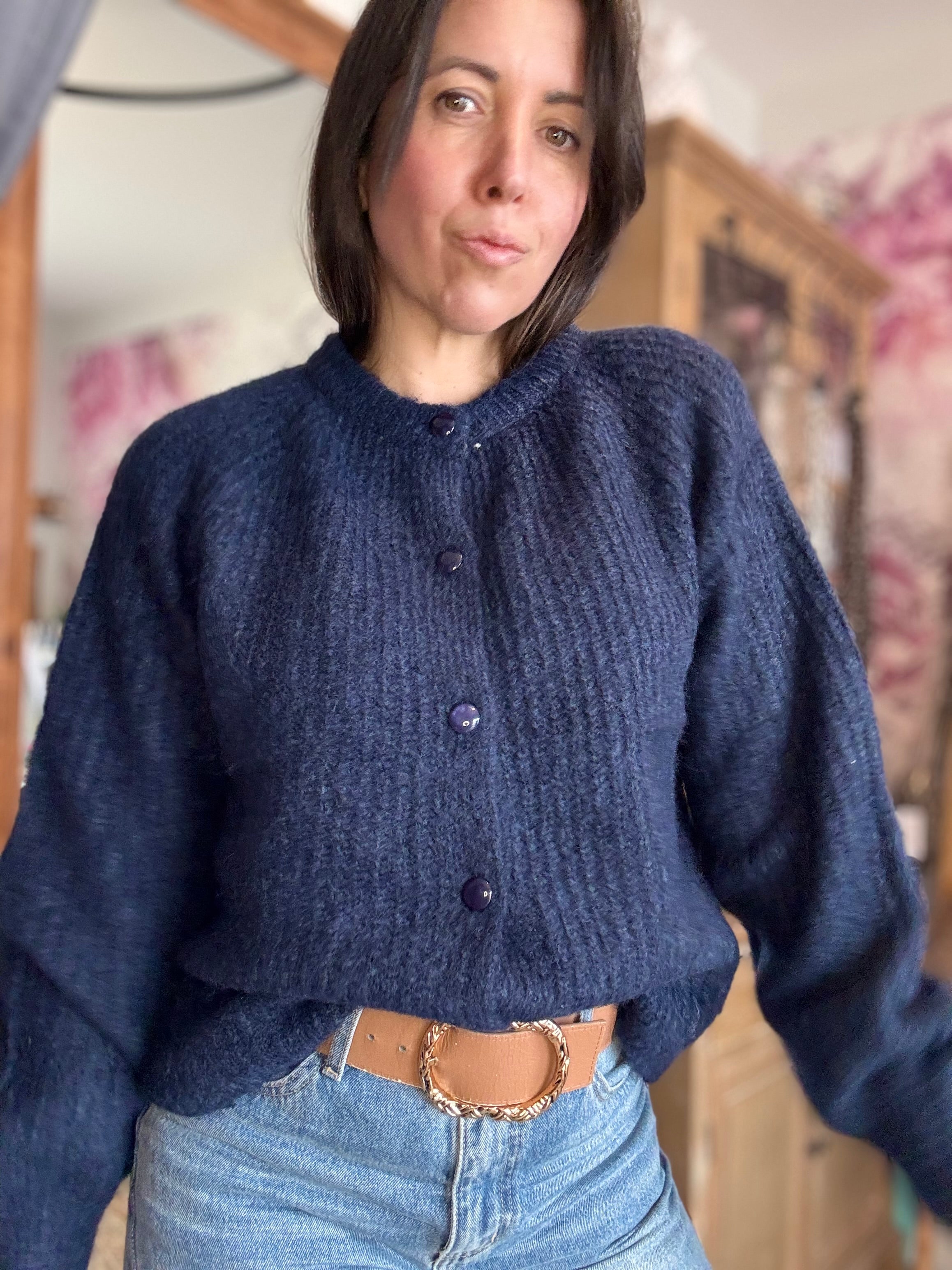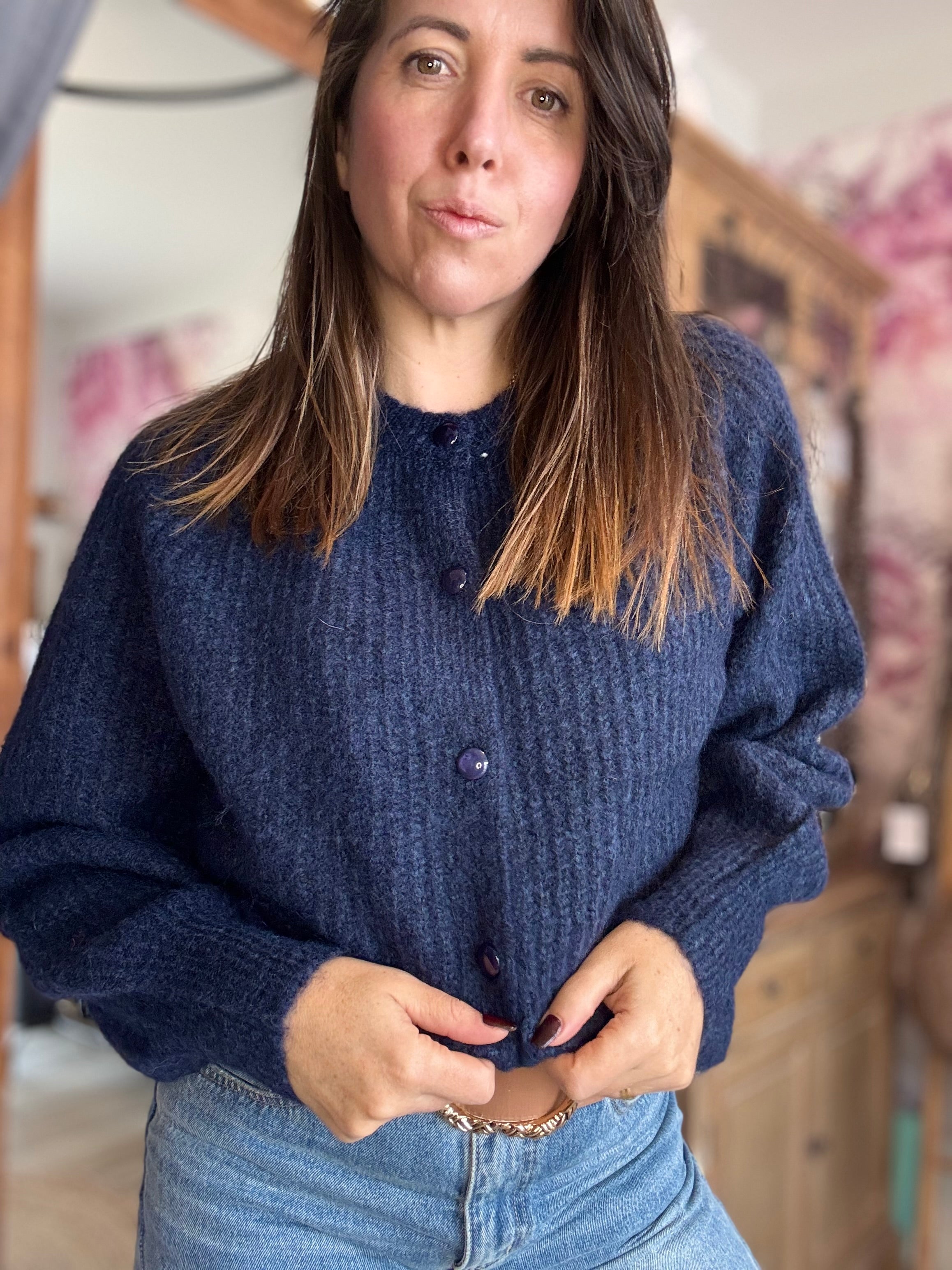 Caractéristique: gilet marine, bouton, assorti, resserrer aux manches.