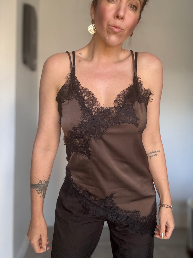Sous pull chocolat dentelle JULIETTE