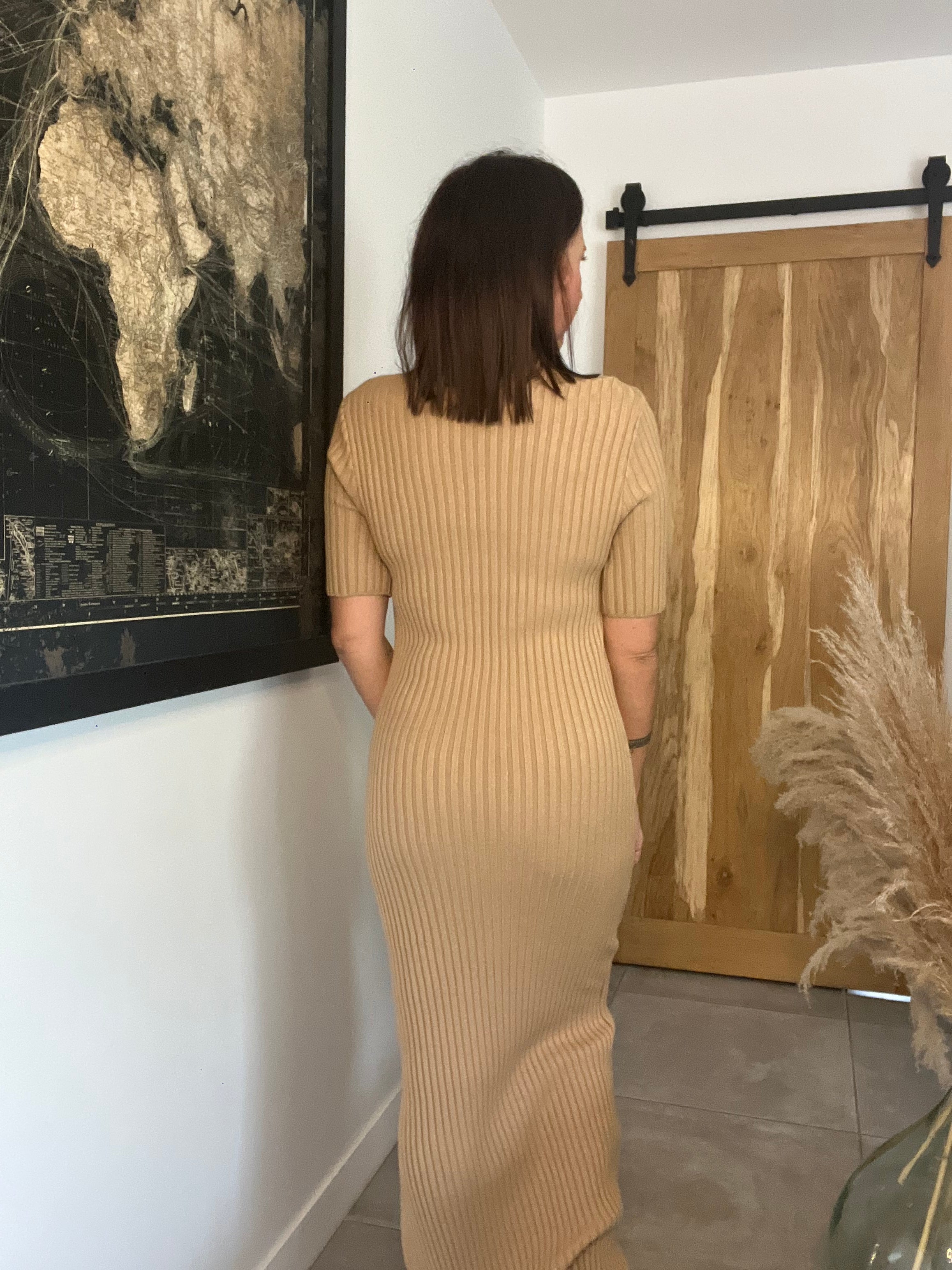 Robe pull moulante manches courtes, robe bohème chic par excellence.