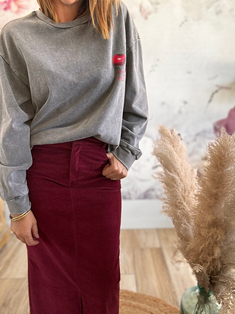 Jupe longue velours bordeaux HELENE